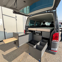 Allestimento su misura per Volkswagen T6 Caravelle, progettato per unire funzionalità, comfort e versatilità in viaggio.
