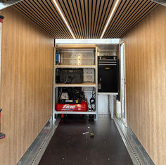 Abbiamo realizzato un allestimento su misura per un carrello porta moto, progettato per il trasporto di due moto da cross e trasformato in un vero e proprio campo base operativo.