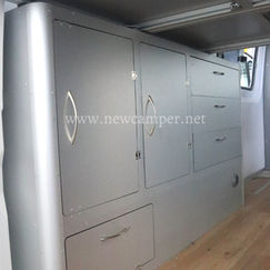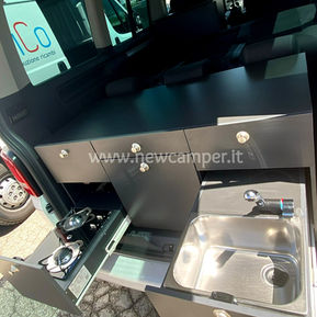I ragazzi hanno installato una panca scorrevole con alloggio porta oggetti e un falso cielo sempre per ritagliare spazio all'interno del veicolo. L'autocarro in questione è stato trasformato in veicolo speciale ad uso abitativo con 4 posti viaggio e 2 posti letto, coibentato, rivestite interamente le pareti, creato le finestre e predisposto un impianto elettrico al lito Victron Energy. Infine sono state installate delle prese usb 220 sia nell'anteriore che nel posteriore, un letto richiudibile molto ampio e la particolarità di questo allestimento: un mobilio in materiale dibond, ultraleggero, sottile e molto resistente.